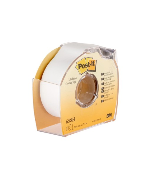 Fita branca reposicionável, perfeita para cobrir texto e etiquetagem temporária. ¶É possível escrever por cima, ideal para efetuar alterações em documentos impressos. ¶Remoção fácil sem causar danos.¶¶Aderência segura e remoção sem deixar resíduos, para que o documento original possa ser reutilizado¶Comprimento personalizável para uma aplicação rápida e fácil¶É possível escrever por cima com diversos tipos de tinta¶Praticamente invisível em fotocópias¶¶Perfeita para etiquetar, tapar ou corrigir!¶Fita para Tapar e Etiquetar Post-it, 6 linhas de espessura. ¶¶1 Rolo por Dispensador¶Contém 1 rolo de 25.4 mm x 17.7 m¶Cor: Branco ¶¶¶