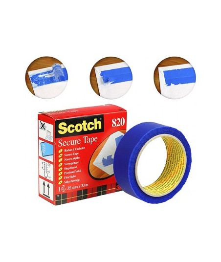 Fita de Sigilo Azul Scotch¶Adesivo postal azul muito prático para proteger a confidencialidade dos seus documentos ou informação.¶Esta fita não se pode descolar sem arrancar fibras de papel, pois qualquer tentativa de abertura se detetará de imediato.¶Medidas: 35 m x 33 mm.