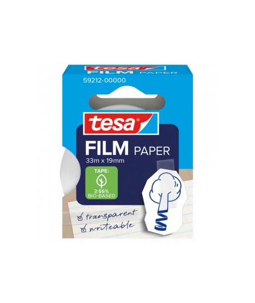 O Tesafilm Paper é o primeiro tesafilm que combina um suporte de papel com uma aplicação transparente.¶¶A opacidade e a capacidade de escrita do tesafilm Invisible são combinadas com a versatilidade e a facilidade de utilização do tesafilm Hand-Tearable.¶Tesafilm Paper é o aliado polivalente para quase todas as ocasiões, com uma contribuição mais sustentável graças ao suporte de papel.¶¶Suporte de papel com certificação FSC.¶Fita adesiva amiga da reciclagem (certificada de acordo com INGEDE, método 12 e DIN Certco).¶¶Aplicação: ¶Reparação, fixação e selagem.¶Etiquetagem.¶Organizar e armazenar.¶¶Cor: Transparente¶Dimensões: 19mm x 33m¶