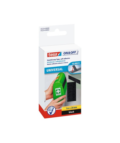 A fita tesa On&Off é uma fita de VELCRO® Brand de uso universal é o seu ajudante para organizar as suas coisas lá em casa e no escritório. ¶Pode ser utilizada para fixar qualquer objeto leve na parede ou qualquer superfície plana, podendo sempre remover e recolocar quantas vezes precisar. ¶Utilize-a para fixar o kit de primeiros socorros na parede ou os utensílios de cozinha para os ter sempre à mão.¶¶Superfícies adequadas: Madeira lisa, Azulejos, Maioria dos plásticos, Metal, Aço¶¶Cor: Preto¶Tamanho: 20mm x 1m