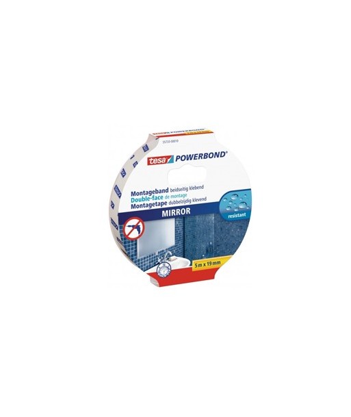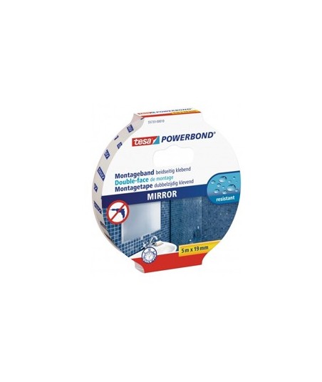 Fita de dupla-face forte tesa® para fixar espelhos e outros objectos planos em divisões húmidas de forma segura e rápida.¶¶Ideal para espelhos.¶Resistente à humidade.¶Fixa espelhos de 70 x 70cm no máximo com até 4mm de espessura.¶Adequada a áreas húmidas, como casas de banho.¶