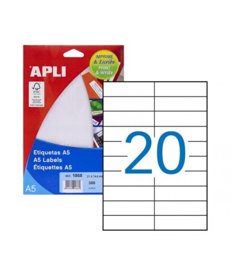 Etiquetas 021x074,6mm 15Fls A5 Apli 300un