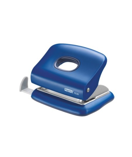 Furador de metal resistente com pega e base em plástico ABS reforçado. ¶Para utilização em casa, na escola ou no escritório.¶¶Perfura até 20 folhas de papel (80 g/m²)¶A construção metálica robusta garante resultados de perfuração perfeitos¶Pega e base em plástico ABS reforçado¶Obturador de confetis integrado, fácil de esvaziar, na base de plástico.¶¶Diâmetro do furo: 5,5 mm¶Quantidade de furos: 2¶Distância do furo: 80mm¶¶Cor: Azul¶Dimensões: 91 x 55 x 112 mm