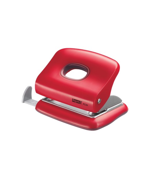 Furador de metal resistente com pega e base em plástico ABS reforçado. ¶Para utilização em casa, na escola ou no escritório.¶¶Perfura até 20 folhas de papel (80 g/m²)¶A construção metálica robusta garante resultados de perfuração perfeitos¶Pega e base em plástico ABS reforçado¶Obturador de confetis integrado, fácil de esvaziar, na base de plástico.¶¶Diâmetro do furo: 5,5 mm¶Quantidade de furos: 2¶Distância do furo: 80mm¶¶Cor: Vermelho¶Dimensões: 91 x 55 x 112 mm