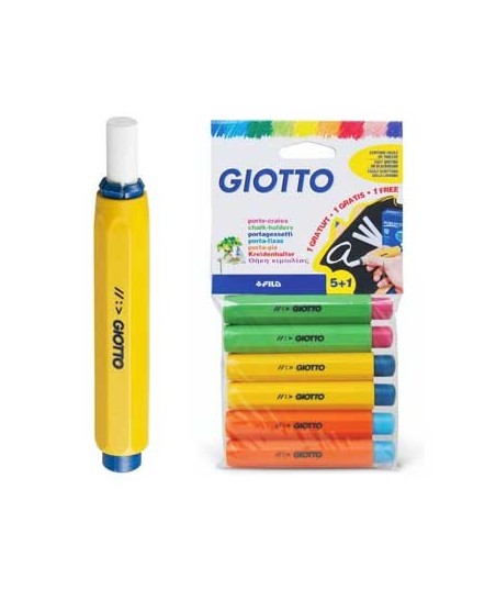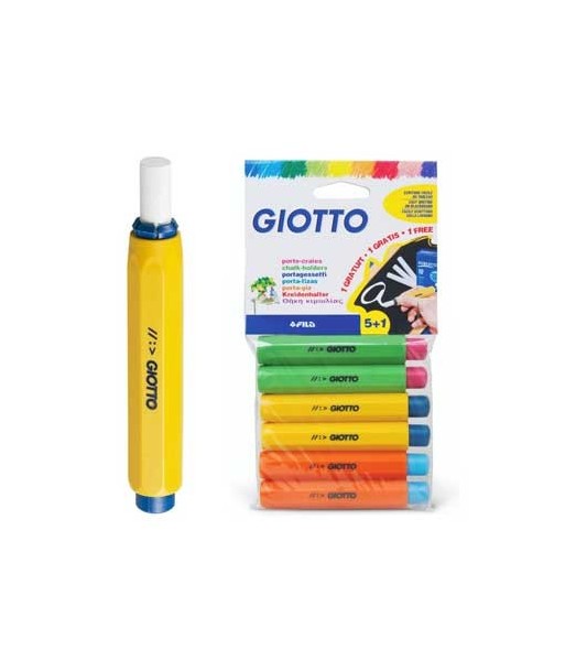 Os coloridos porta-giz Giotto são seguros e práticos: Mantêm as tuas mãos limpas, protegem as peles sensíveis de possíveis irritações e faz que a escrita e o desenho sejam ainda mais divertidos!¶¶São de plástico, leves e estão disponíveis em 3 cores diferentes.¶¶Acessório prático, leve ergonómico para a escrita em quadros negros ou de ardósia.¶É fácil de agarrar e impede a irritação da pele e/ou a quebra de unhas.¶