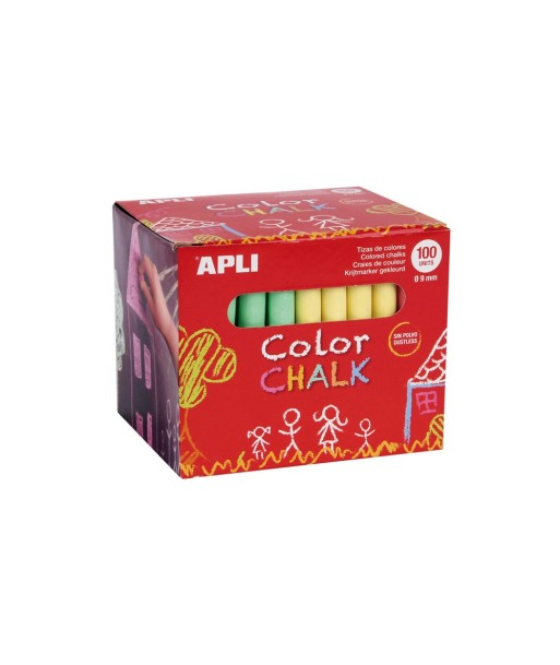 Giz redondo em cores sortidas: amarelo, verde, vermelho, azul, laranja e roxo. ¶Cada embalagem contém 100 pedaços de giz de tamanho Ø 9 x 80 mm. ¶¶Giz feito de sulfato de cálcio com poucos resíduos, sem pó. ¶Ideal para escrever, desenhar e colorir em quadros e pavimentos. ¶¶Adequado para uso escolar.¶