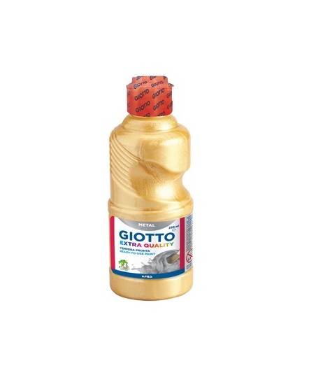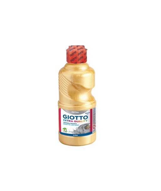 Pinta com um look metálico. Giotto Extra Quality Metal proporciona um efeito inteligente e moderno.¶Pronto para usar e fácil de aplicar, deixa um acabamento suave, opaco e é ideal para a escola ou pinturas em casa. ¶¶À base de água e fabricado com materiais seguros, as cores ouro e prata apresentam-se em uma garrafa ergonómica e com uma tampa doseadora. ¶Podem ser misturados com outros guaches para criar efeitos metálicos mágicos. ¶As tintas são laváveis das mãos, mas qualquer mancha em tecidos deve ser esfregada com sabão seco enquanto a tinta ainda está fresca e de imediato lavada na máquina a 40 graus.¶¶Garrafa de 250ml.¶Cor: Ouro¶¶Idade recomendada: +3anos