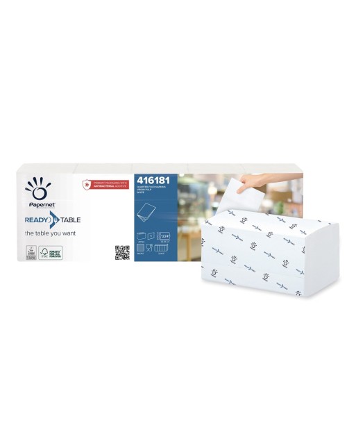 Adequados para todas as ocasiões, os guardanapos dobrados da Papernet são um ótimo aliado para personalizar e tornar a mesa mais funcional.¶São dispensados um de cada vez, contribuindo para evitar desperdícios.¶¶Papel: Celulose pura¶Gramagem: 18g/m2¶Folhas: 1¶Altura: 21,6cm¶Comprimento: 33,2cm¶Medidas dobradas: 16,6 x 10,8 cm¶Cor: Branco¶¶Certificações¶EU ECOLABEL¶O rótulo ecológico da UE indica um produto que garante um impacto ambiental reduzido em todas as fases do seu ciclo de vida.¶¶FSC¶O FSC é o sistema de certificação de florestas, madeira e produtos derivados que garante que os produtos provêm de florestas geridas de acordo com normas ambientais, sociais e económicas rigorosas.