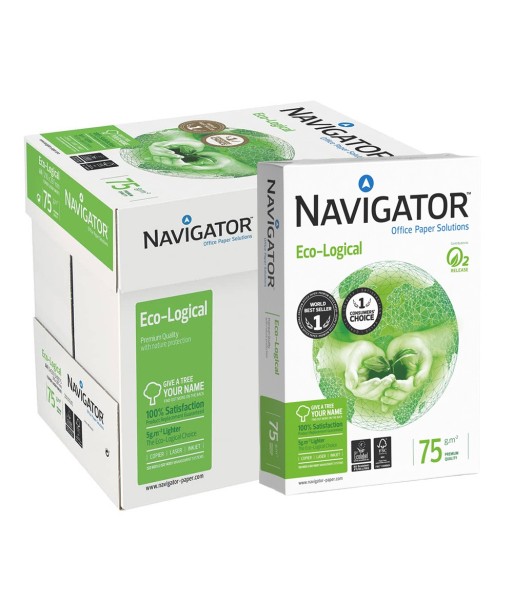 ECO-LOGICAL 75 g.m -2 / Impressão responsável com qualidade premium.¶¶A ESCOLHA ECOLÓGICA, 5 g.m-2 mais leve¶Utiliza menos recursos naturais enquanto garante um desempenho de qualidade premium.¶¶DÊ UM NOME A UMA ÁRVORE¶O seu cliente pode dar o seu nome a uma das várias milhões de árvores cultivadas todos os anos nos nossos viveiros florestais.¶¶SATISFAÇÃO A 100%¶Papel de escritório de alta qualidade e custo eficiente, apoiado por uma garantia de substituição do produto.¶¶PRESERVAR A BIODIVERSIDADE¶Integramos a conservação da biodiversidade no nosso modelo de gestão florestal, com parcerias com organizações ambientais.¶¶O papel que escolhe é crucial para determinar a vida útil da sua impressora e a qualidade das suas impressões.¶Os papéis reciclados libertam mais poeira, o que é prejudicial para o seu equipamento de impressão e reduz a sua vida útil. Além disso, o papel reciclado é notavelmente mais escuro e, portanto, não é ideal para impressão a cores.¶¶Navigator Eco-Logical é feito a partir de fibras de Eucalyptus globulus, que proporcionam uma folha mais volumosa, com menos encravamentos e melhor absorção de tinta.¶¶É um papel de escritório premium mais espesso, mais branco e mais opaco, garantindo os melhores resultados de impressão.¶¶A4¶210x297 mm¶500 Folhas/Resma¶5 Resmas/Caixa¶Para impressão Laserjet e Inkjet¶Permite impressão dos dois lados. ¶¶¶¶