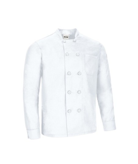Jaleca de chef de manga comprida.¶Ideal como roupa de trabalho e uniformes de hotelaria e restauração.¶¶Composição:¶65% Poliéster¶35% Algodão¶¶Cor: Branco¶Tamanho: 3XL