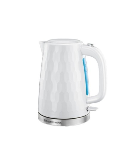Apetece-lhe uma chávena de chá de um jarro elétrico que se orgulhe de ter na bancada da sua cozinha?¶Então vai adorar o jarro elétrico Honeycomb da Russell Hobbs em branco. ¶Com um design premium a um preço acessível, este jarro elétrico de design inspirado em favos de mel e realces em aço inoxidável irá fazer uma afirmação de estilo na sua bancada, sem ter que redecorar toda a sua cozinha.¶Ao ferver uma chávena em 55 segundos e com um bico de verter perfeito que evita salpicos e derrames, preparar uma chávena da sua bebida favorita nunca foi tão fácil. ¶Jarro elétrico de plástico texturado com 1,7 l de capacidade¶Marcadores internos de 1/2/3 chávenas para fervura rápida¶Bico de verter perfeito¶Base de 360° com compartimento para o cabo¶2400 W¶Ferve 1 chávena em 55 segundos¶