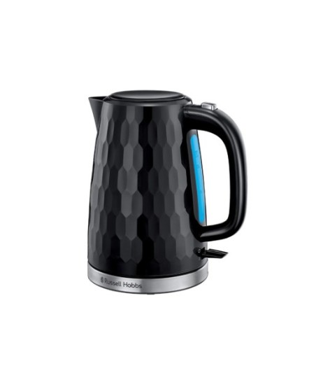 Mantenha-se a par das últimas tendências de cozinha com o jarro elétrico Honeycomb da Russell Hobbs em preto, que lhe oferece um design premium a um preço acessível. ¶Este design inspirado em favos de mel com realces em aço inoxidável, permite-lhe transformar facilmente e sem esforço a sua cozinha e dar estilo à sua bancada. ¶Desfrute de uma chávena em 55 segundos*, graças a um bico de verter perfeito que evita salpicos e derrames - é tempo de desfrutar de uma agradável infusão.¶¶DESIGN TEXTURADO¶Trazendo um toque contemporâneo à sua bancada, o jarro elétrico Honeycomb é fabricado em plástico preto premium com um design texturado, inspirado em favos de mel. Com um padrão hexagonal repetitivo e realces em aço inoxidável, pode adicionar um pouco de estilo a todas as infusões que prepara.¶¶MARCADORES INTERNOS DE 1/2/3 CHÁVENAS PARA FERVURA RÁPIDA¶Desfrutar de uma infusão rápida nunca foi tão fácil graças aos marcadores de área de fervura rápida do jarro elétrico Honeycomb. Os indicadores internos de 1/2/3 chávenas do jarro elétrico permitem-lhe colocar apenas a quantidade de água necessária para uma infusão, para que possa ferver uma chávena em 55 segundos*. Assim, mesmo nas manhãs mais agitadas, é possível sentar-se e desfrutar verdadeiramente de uma infusão. Ferver apenas a água de que precisa vai permitir-lhe poupar até 66% de energia**.¶¶TAMPA DE ABRIR POR PRESSÃO¶Graças à tampa de abrir por pressão do jarro elétrico Honeycomb, enchê-lo para uma infusão rápida é simples. Carregue no botão para manter a tampa do jarro elétrico aberta e coloque-o diretamente por baixo da torneira para o encher facilmente.¶¶Indicador de nível de água ¶Proteção que impede que a água evapore devido à fervura¶Tampa de abrir por pressão¶Bico de verter perfeito¶Base de 360° com compartimento para o cabo¶¶Cor: Preto¶Capacidade: 1,7L ¶Potência: 2400W¶¶* 1 chávena equivale a 235 ml de água. ¶** Ferver 1 chávena (235 ml) em comparação com 1 litro.