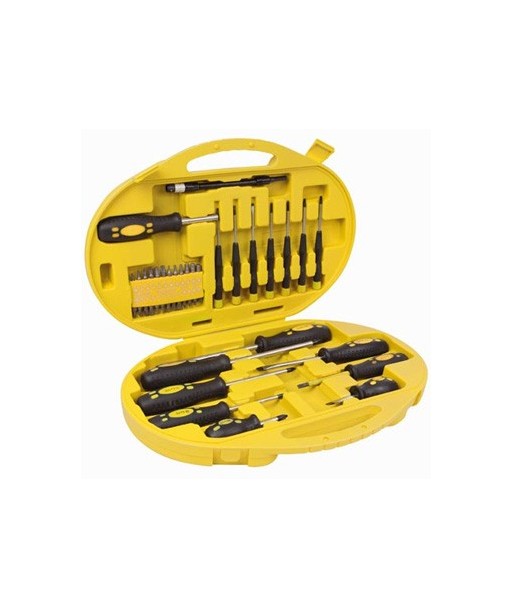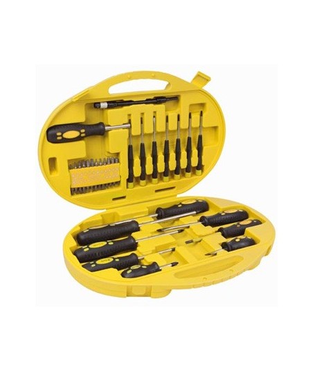 3 chaves de parafusos planas¶4 cruciformes¶1 chave de parafusos plana isolada¶3 chaves de parafusos de precisão plana¶2 chaves de parafusos de precisão cruciformes¶2 chaves de parafusos de precisão em estrela¶25 bicos¶1 porta-puas¶1 extensão flexível