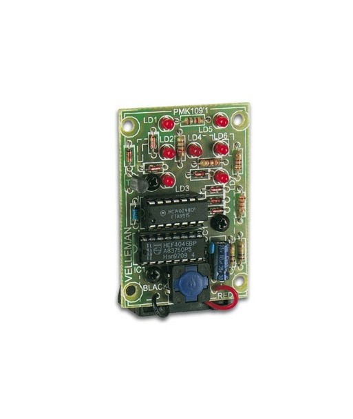 Dados eletrónicos com indicação de LED. Lentamente, rola a um lance quando se deixa de premir o botão.¶¶Fonte de alimentação: bateria de 9V (não incl.)¶Dimensões: 42 x 60mm / 1,7 x 2,4 "¶¶Dicas¶Se os LEDs normalmente esmorecidos ainda estão ligados, pode substituir ZD1, diodo zener de 2V7, por um diodo zener 3V6 ov (500mW).¶¶Tipo de embalagem: Blister cartão¶