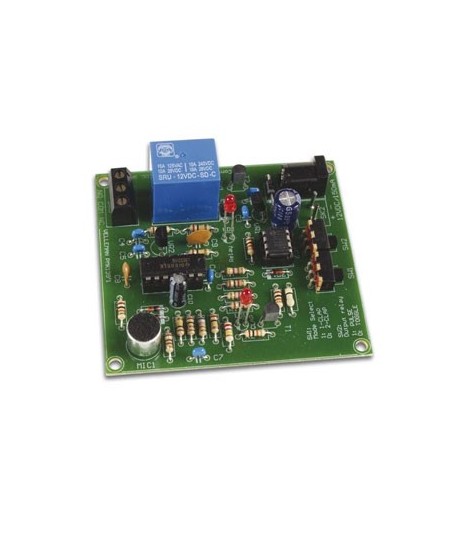 Liga/desliga a iluminação ou outro dispositivo pelo simples acto de bater palmas¶Ideal para pessoas com deficiências ou idosos¶Boa imunidade contra ruídos circundantes¶'1-clap 'ou '2-clap' modo de seleção¶Os '2-clap' selecciona o modo de temporização de segurança de desligamento. (aprox. 5h)¶Saída de relé "pulso" ou seleção 'alternância'¶Controlado por microprocessador¶Relé de saída com indicador LED¶¶Potência relé: 24VDC/AC 3A¶Fonte de alimentação: 12VDC / 150mA¶Com adaptador de tomada DC¶Dimensões: 79 x 73 x / 22 milímetros 3,1 x 2,9 x 0,9 "