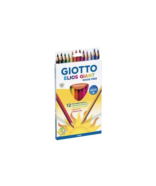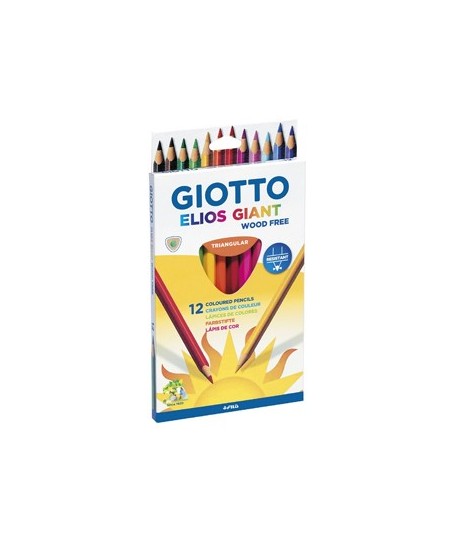 Giotto Elios wood-free, lápis de cor triangulares sem madeira.¶¶Deixa-te levar pela tua imaginação com os lápis de cor triangulares Giotto Elios. ¶¶Estes lápis têm uma mina super resistente de 3.3mm, firmemente incorporados dentro do corpo do lápis. ¶Sem madeira, com 18cm de comprimento são muito seguros porque não produzem fragmentos em caso de quebra e são fáceis de afiar.¶¶Conjunto com 12 unidades
