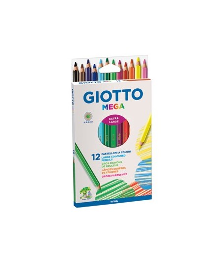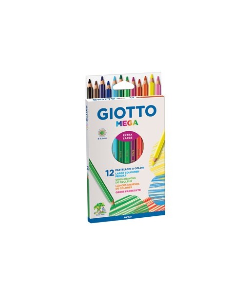 Giotto Mega, criatividade extra-larga.¶¶Uma obra de arte necessita de uns bons lápis de cor.¶Com uma mina grande e super resistente 5,5mm.¶Giotto Mega consegue durar mais graças a sua grande reserva de cor. ¶¶Caixa de cartão com 12 unidades¶¶Idade recomendada: +3anos
