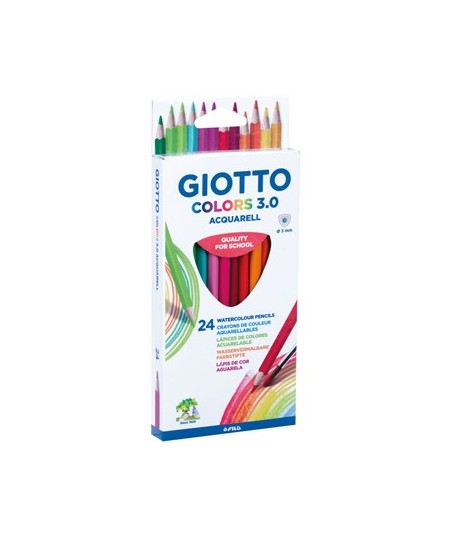 Giotto Colors 3.0: ideal para a escola.¶¶Descubra a cores vibrantes de estes lápis ideais para a escola, feitos de madeira certificada FSC proveniente de explorações florestais sustentáveis com uma mina super resistente de 3mm.¶¶Caixa de cartão com 24 peças