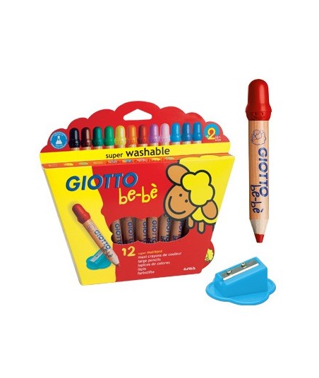 Lápis de Cor Giotto be-bè: para pequenas crianças com grandes ideias.¶¶Com lápis deste tamanho, as crianças podem pensar em grande na escola.¶A enorme mina de 7mm permite à criança desenhar e pintar com completa liberdade e total segurança, graças ao topo anti mordeduras em plástico.¶Cores facilmente laváveis e muito fácil de afiar graças ao super apara-lápis incluído em cada embalagem.¶ Com os lápis de cor, é fácil tornar-se criativo.¶¶Idade recomendada: +3 anos