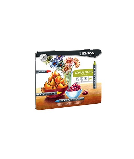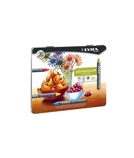 Lápis de Cera 24 Cores Lyra Aquacolor Cx Metal