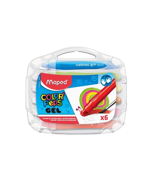 Textura suave, cores vibrantes e diversão garantida!¶¶Os lápis de cera Maped ColorPeps Gel combinam o melhor da coloração com a conveniência moderna.¶Com tecnologia em gel tipo aquarela, deslizam suavemente sobre o papel e oferecem uma experiência artística única e confortável.¶¶Principais destaques:¶Textura macia estilo aquarela, para uma coloração fluida e uniforme.¶Formato triangular ergonómico, que proporciona melhor aderência e conforto.¶Corpo em plástico com sistema rotativo, evitando sujidade nas mãos.¶Incomparável sensação de deslizamento¶6 cores vibrantes com elevado poder de cobertura¶Caixa plástica resistente, ideal para armazenamento e transporte.¶¶Perfeito para artistas em formação, crianças criativas ou qualquer apaixonado por papelaria colorida e prática!¶¶