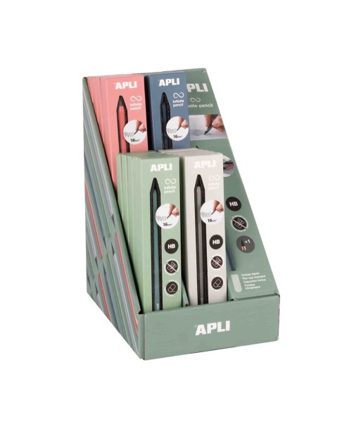 Expositor com 20 lápis infinitos que lhe permitem escrever sem parar. ¶Graças à sua mina suavemente abrasiva e durável, o inovador lápis Infinite permite-lhe escrever até 16 km sem precisar de ser afiado, proporcionando-lhe assim uma concentração ótima durante as suas atividades de escrita e desenho.¶¶O expositor inclui:¶20 embalagens de lápis em 5 cores diferentes: bege, verde, azul, cor-de-rosa. ¶Cada embalagem contém 1 lápis Infinite, 1 mina de recarga e 1 tampa.¶¶