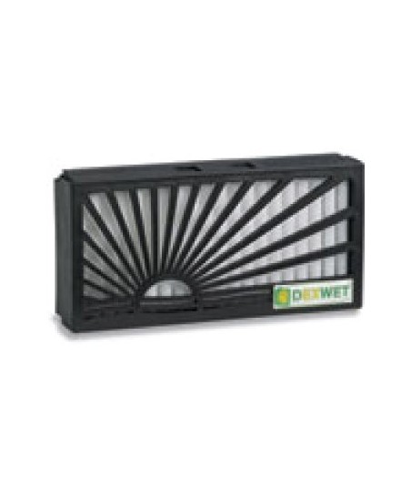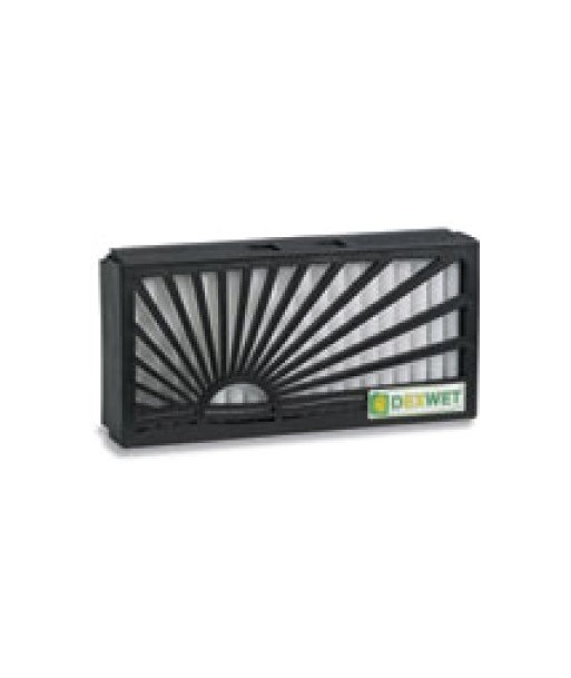 Concebido especialmente para aberturas de exaustão alongadas¶Compatível com máquinas com aberturas de exaustão maiores¶Para cobrir aberturas amplas, o filtro pode ser montado em várias combinações¶¶Ciclo de vida do filtro¶Até 12 meses ou 50.000 impressões monocromáticas (para impressões a cores, recomenda-se uma frequência¶de substituição maior). O filtro deve ser inspeccionado regularmente, se o filtro estiver muito contaminado, recomenda-se a substituição imediata.¶¶Tecnologia¶Os filtros Dexwet utilizam hastes feitas de tecido de fibras finas e varetas de plástico impregnadas com um fluido¶especificamente adaptado para a captura e aderência destas partículas finas e ultra finas de toner.¶Além disso as bactérias e os germes que são absorvidos pelo fluido do filtro serão eliminados devido à falta de oxigénio.¶¶Impacto na temperatura de funcionamento¶Instalado nas aberturas de exaustão da impressora, fotocopiadora ou fax, o Dexwet foi concebido para o ar sair da máquina sem obstruções e sem causar um aumento significativo da temperatura no interior do equipamento.¶¶Eficácia do filtro¶Proporciona uma eficácia de filtragem de aproximadamente 92% das partículas finas de tamanho inferior a 10 micrómetros.¶Reduz significativamente as emissões das partículas ultra finas compreendidas entre 0,01 e 0,47 micrómetros de tamanho.