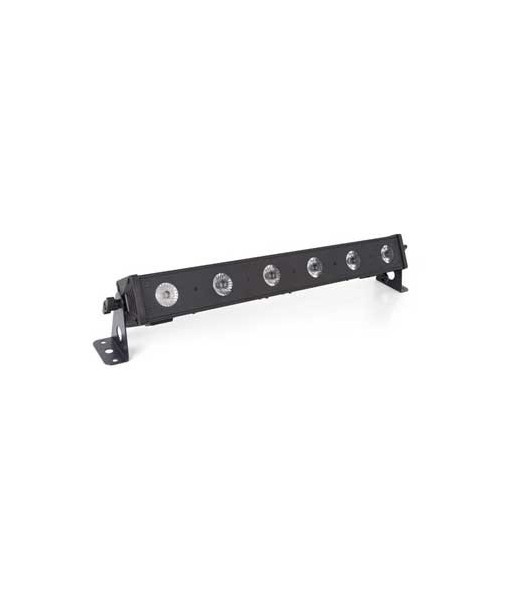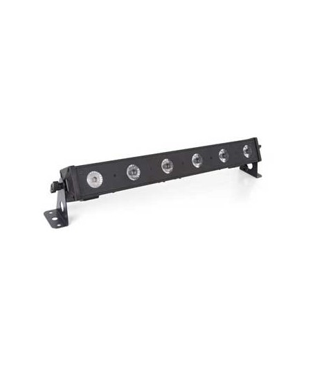 Faixa LED UV ultra leve para efeitos de luz negra.¶Controlo por DMX ou fácil de controlar nos modos autónomo ou ativado por som ¶Modo de funcionamento silencioso idela para aplicações sem ruído.¶¶Controlo por DMX, modo autónomo ou controlado por som¶É possível através de qualquer controlador DMX comercial¶Fácil controlo e configuração do menu no modo autónomo¶Velocidade de disparo do obturador de 0-20 Hz¶Vontrolo de som através de microfone incorporado, sensibilidade do microfone ajustável Através do menu de configuração¶Com suporte de instalação para pendurar ou pousar¶¶Controlo por DMX via no máx. 4 canais¶1 canal: dimmer UV¶2 canais: dimmer, macros¶3 canais: dimmer, obturador, macros¶4 canais: dimmer, obturador, UV, macros¶cabo de segurança não incluído¶¶Especificações¶Alimentação: 100-240 VAC 50 Hz¶Consumo: 18 W¶Cor: preto¶Fonte de luz: 6 x LED UV 3 W¶Ângulo do feixe de luz: 25°¶Dimensões: 587 x 87 x 104 mm¶Peso: 1.6 kg¶Fator de potência: 0.48¶Máx. corrente de ligação: 10 A¶Fusível: F1A 250 V¶¶Tipo de embalagem: Box (Carton)¶
