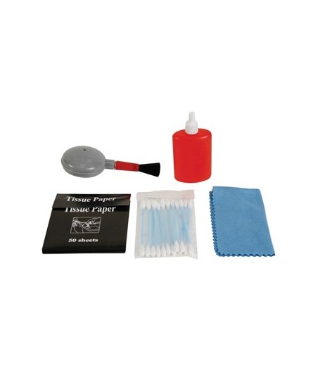 Ideal para limpeza de lentes e corpo de câmaras, camcorders...¶¶Kit contém:¶1x: pincel¶1x: líquido de limpeza especial não abrasivo e de PH neutro¶1x: pano de limpeza¶12x: cotonete¶50x: lenço de papel¶¶Líquido de limpeza: ± 30ml¶Pincel: 110 x 50 x 30mm¶Pano de limpeza: 115 x 185 milímetros¶Lenço de papel: 80 x 160 milímetros¶Peso: 110g ±¶¶Tipo de embalagem: Blister cartão¶
