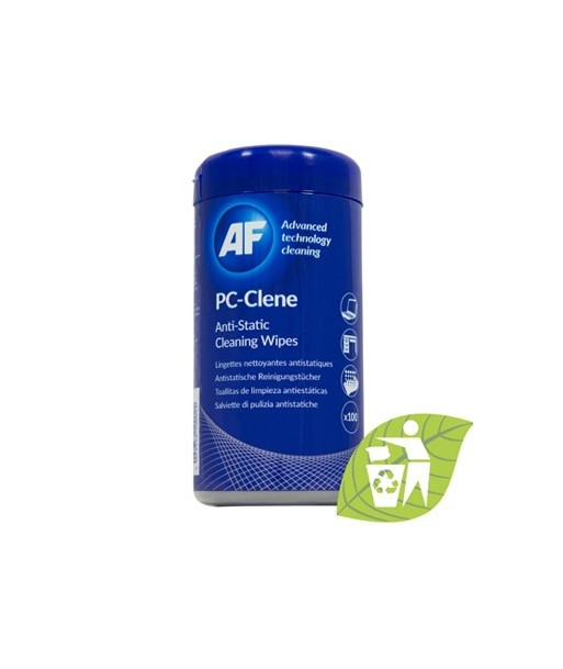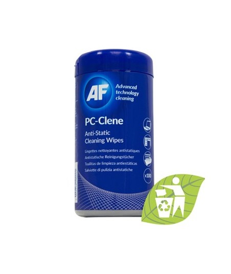 PC Clene - Toalhitas de limpeza antiestáticas para superfícies de PC¶¶Um tubo de limpeza de uso geral com lenços de limpeza antiestáticos impregnados pode ser usado em todas as superfícies de vidro e plástico de computadores e equipamentos de escritório.¶¶Feito de papel totalmente reciclável para incentivar um esforço de limpeza ecologicamente correto.¶¶Compatível com ambientes de escritório e home office. ¶A conveniente banheira resselável bloqueia o frescor dos lenços para uso futuro. ¶Para melhores resultados, use junto com o AF Safetiss STI200 para polir a superfície após a limpeza.¶¶Pontos chave:¶Livre de álcool¶Antiestático¶Propósito geral¶Resselável para manter o frescor¶Lenços de papel totalmente recicláveis¶¶Adequado para:¶Teclados¶Superfícies de plástico¶Ratos, Impressoras¶Máquinas de fax¶Controladores de jogos¶Invólucros de plástico de fones de ouvido VR¶PC e equipamento de escritório