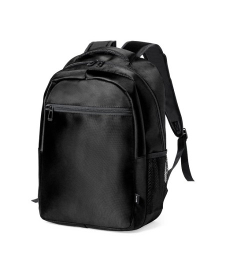 POLACK¶Mochila de alta qualidade fabricada em RNYLON 420D*. ¶¶Compartimento principal com fecho de correr a condizer e duplo puxador. ¶Inclui bolso exterior com fecho de correr e 2 bolsos laterais de rede. ¶Acolchoado na pega, parte traseira e alças para ombros, estas últimas ajustáveis. ¶Interior com compartimento acolchoado para computador portátil de até 15 polegadas e acessório nas costas para ajuste em trolley. ¶¶*O material RNYLON é elaborado a partir de plástico reciclado, para assim fomentar a reutilização de resíduos plásticos e ajudar na sustentabilidade do planeta.¶¶Cor: Preto¶Dimensões: 32 x 42 x 15 cm¶Peso: 440 gr
