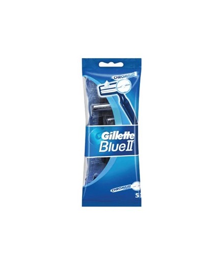 Gillette Blue II Descartável¶Máquina de barbear descartável para homem tem 2 lâminas de longa duração com revestimento de crómio, para que não tenha de mudar tão frequentemente.¶¶Lâminas duplas para um maior conforto e longa duração, revestidas a crómio e cabeça fixa.¶A embalagem com sistema de fecho zip-pak facilita o armazenamento