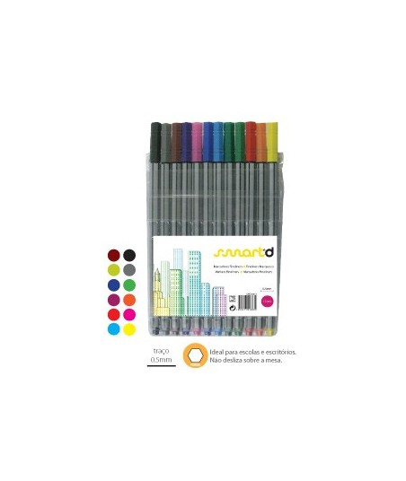 Marcador Fino SmartD Fineliner 0,5mm 12 Cores 12un