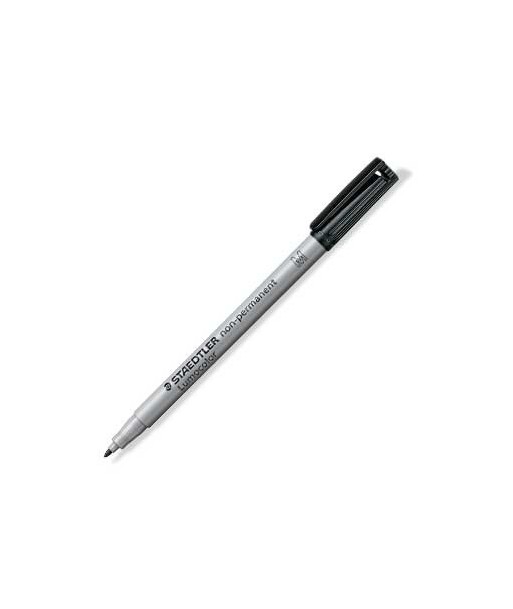 Caneta universal para quase todas as superfícies. Pode ser removida da película com um pano húmido. Tinta solúvel em água. Secagem rápida. Corpo e tampa em polipropileno (PP). ¶Não permanente.