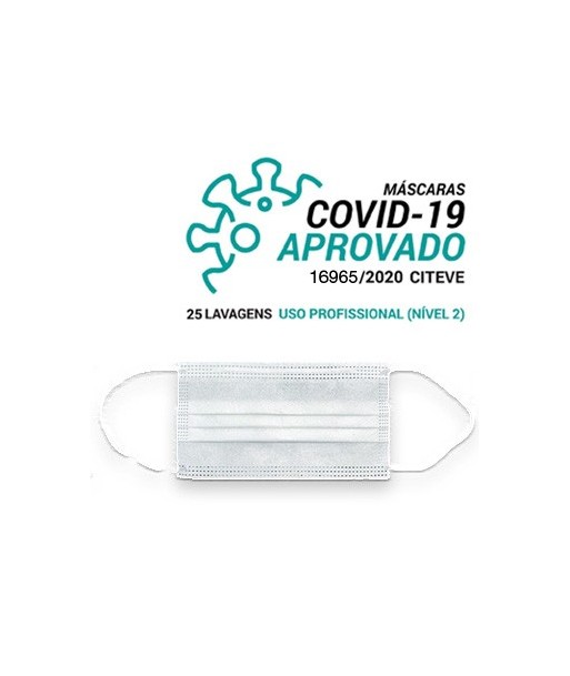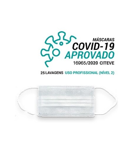 Citeve 16965/2020¶25 Lavagens ¶Nivel 2¶Máscaras destinadas a utilização por profissionais que não¶sendo da saúde estão expostos ao contacto com elevado¶número de indivíduos em espaços interiores.¶¶Camada¶Interior¶100% Microsplit (55% PET + 45% P.A. 6.6)¶Camada¶Exterior¶NW - 100% PES¶Elástico 70% PES + 30% PUE