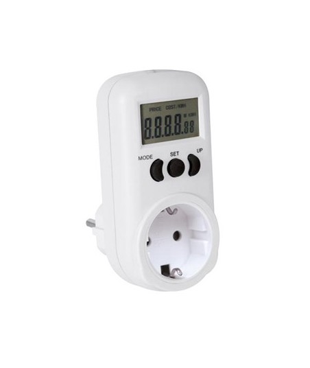 Determine os custos de energia dos seus dispositivos através deste medidor de energia¶Ecrã de LCD¶4 ecrãs diferentes para poder apresentar todos os dados¶Valores exibidos: linha de energia (W), consumo (kWh), o custo total, custo / KWh¶Permite redefinir funções¶Sistema de segurança para crianças¶¶Voltagem: 230VAC / 50Hz¶Max. carga: 3600W / 16A¶Min. power display: 0.1W¶Medição de energia: ± 1% or ±1W (0~100W)¶min. consumo display: 0.01kWh¶Consumo: 0.00 ~ 9999.99 kWh¶Dimensões: 55 x 115 x 75 mm¶Peso: +/- 120g
