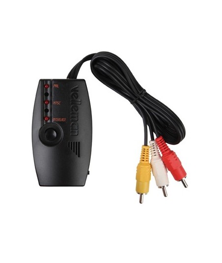 Gerador de bolso vídeo e onda senoidal fixa com áudio¶Padrões de vídeo preto e branco + escala de cinzentos¶Para verificar a qualidade e alinhamento de imagem do seu monitor ou TV¶Usar para ajuste de imagem ou de resolução de problemas¶¶Seleções de vídeo:¶PAL ou NTSC¶Entrelaçada ou progressiva (não-entrelaçado)¶12 padrões diferentes incluídos: padrões de pureza (preto, branco, cinza), em tons de cinza (escada), grades, telas quadradas c/ 100% de contraste¶4/3 e 16/9 padrões¶¶Fonte: 3V, bateria CR2032 (não incluída)¶Consumo: 12mA (grade sinal @ 75ohm)¶Saída de áudio: 1kHz onda senoidal / 0.7Vrms (carga 10k)¶Saída de vídeo: 0.8Vpp ohm @ carga de 75 (sinal de escada)¶Auto Power Off: 10 minutos¶¶Tipo de embalagem: Box (caixa)¶