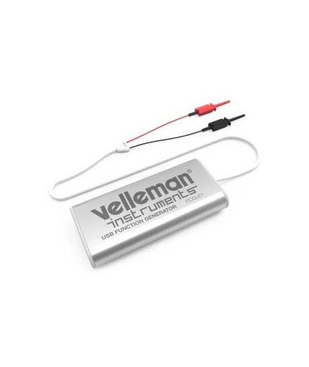 O novo gerador de funções miniatura para PC USB é simples de usar e tem uma faixa de frequência de até 1 MHz!¶¶Este instrumento de medição pode gerar formas de onda senoidal, quadrada e triangular e possui uma resolução DAC de 10 bits. Para finalizar, ele tem uma saída de 0,2 Vpp a 10 Vpp.¶¶Faça o download do software Windows® dedicado e controle os vários sinais. Entre outras coisas, o software inclui um gerador automatizado de sequência de ondas.¶¶Características¶¶software Windows® dedicado para controlar os vários sinais (download gratuito)¶O software inclui um gerador automatizado de sequência de ondas¶download de softwaré isento de custos¶caixa moderna¶cabos de teste¶cabo USB¶¶Especificações¶¶Resoluções DAC: 10 bits¶faixa de frequência: seno, forma de triângulo 1 Hz a 1 MHz, onda quadrada 1 Hz a 100 kHz¶resolução da frequência: 0.04 Hz¶função de varredura¶faixa de amplitude: 200 mVpp a 10 Vpp a 1 kHz // sem carga / deslocamento de 0 V¶faixa de amplitude com deslocamento: 200 mVpp a 7,5 Vpp a 1 kHz // sem carga / deslocamento de -2,5 V a +2,5 V¶faixa de deslocamento: de 0 a -2,5 V ou +2,5 V máx. (resolução de 0,5% da escala completa)¶tipos de onda: senoidal, quadrada e triangular¶distorção (ponta.) na onda sinusoidal (THD): <0,02% @ 1 kHz / 0 dB / 600 Ohm¶tempo de subida / queda da onda quadrada: <0,2 µs¶impedância de saída: 50 Ohm¶Nota: A terra USB do PC está conectado à saída GND¶Requisitos Mínimos do Sistema:¶Windows® XP, Vista, 7, 8, 10¶mouse ou touchpad¶porta USB livre 1.1 ou 2.0¶¶Informação sobre a embalagem¶¶Tipo de embalagem: Display box¶