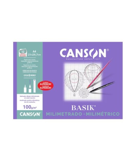 Papel Milimetrico 100gr A4 Canson Basik Minipack 12Fls