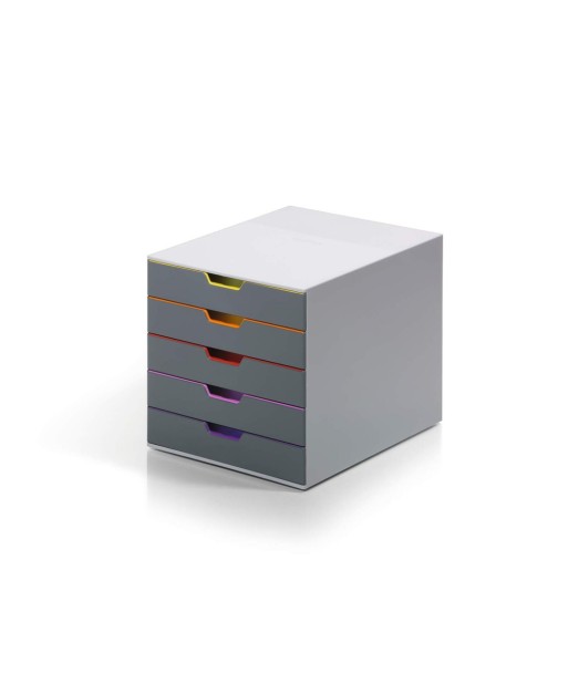 Móvel de secretária com gavetas em 5 cores diferentes que servem de auxiliares de organização e orientação.¶¶Para formatos até A4, C4, bem como formatos de folio e carta¶¶Movimento silencioso da gaveta, com batente de extração¶Com janelas de etiquetagem transparentes e folhas de inserção intercambiáveis ¶Empilhável com pés de plástico antiderrapantes¶¶Gavetas amovíveis: Sim ¶Disposição variável das gavetas: Sim ¶Empilhável: Sim¶¶Elevada qualidade de ABS e PS¶Medidas: 280 x 292 x 356 mm (Largura x Altura x Profundidade)¶¶5 anos de garantia