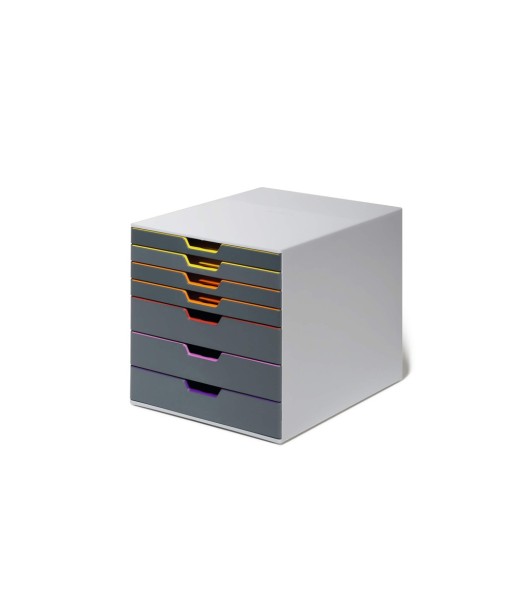 Móvel de secretária com gavetas em 7 cores diferentes que servem de auxiliares de organização e orientação, com 3 gavetas fundas e 4 gavetas rasas.¶¶Para formatos até A4, C4, bem como formatos de folio e carta¶¶Movimento silencioso da gaveta, com batente de extração¶Com janelas de etiquetagem transparentes e folhas de inserção intercambiáveis ¶Empilhável com pés de plástico antiderrapantes¶¶Gavetas amovíveis: Sim ¶Disposição variável das gavetas: Sim ¶Empilhável: Sim¶¶Elevada qualidade de ABS e PS¶Medidas: 280 x 292 x 356 mm (Largura x Altura x Profundidade)¶¶