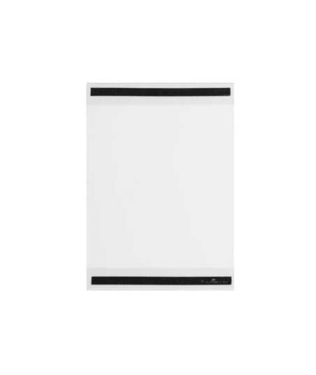 Aplicação em formato paisagem em superfícies metálicas.¶Adesão magnética garantida por duas faixas magnéticas na parte de trás.¶Permite a substituição fácil dos documentos com um simples deslize lateral.¶Produto fabricado com 80% de rPET (reciclagem pós-consumo).¶Os materiais separáveis permitem a sua eliminação e reciclagem separadas.¶¶Para formato: A4¶Dimensões exteriores (L x A): 211 x 299 mm¶Profundidade externa: 0,4 mm¶Cor: Transparente¶¶Quadro pode ser aberto: Não¶Leitura frente e verso: Não¶Estabilidade térmica: -50ºC - 70ºC¶Antirreflexo / minimiza reflexos: Sim¶¶