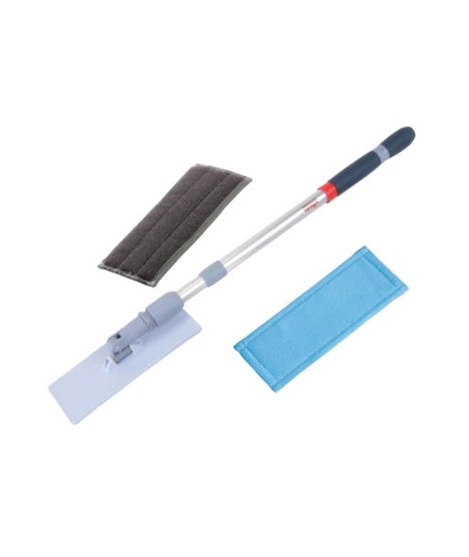 Limpeza rápida, segura e eficiente de superfícies interiores difíceis como paredes de vidro, espelhos, aço inoxidável, quadros-negros, mesas...¶¶Incluído:¶#6861291 Cabo Telescópico Alumínio 50cm Vileda Professional¶#6861294 Suporte Mopa Pad Master Vileda Professional¶#6861295 Mopa HandPad Safety 030cm Vileda Professional Recarga¶#6861292 Mopa Aquasoft Pad Interiores Vileda Professional Recarga