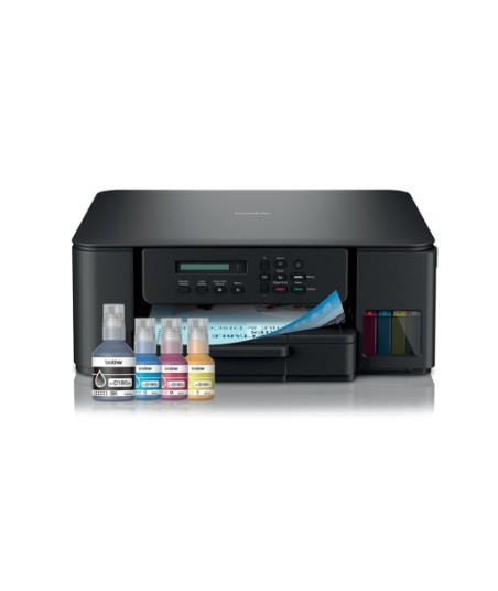 Cópia, Impressão Tankbenefit, Digitalização¶¶Imprima mais por menos com os frascos de tinta Tankbenefit de alto rendimento e os depósitos fáceis de encher que reduzem os seus custos de impressão.¶¶» Imprime até 16 páginas por minuto (ISO/IEC 24734)¶» Impressão automática em frente e verso¶» Painel de controlo LCD de 1 linha¶» WiFi 5GHz e USB¶» Bandeja de entrada de papel de 150 folhas, ranhura de alimentação manual¶» Inclui frascos de tinta com uma capacidade de aproximadamente 7.500 páginas a preto e 5.000 a cores¶¶Tipo de impressora: Cores¶Função: Cópia, Impressão, Digitalização¶Tecnologia: Jato de tinta¶Tamanho máximo do papel: A4¶Conetividade: USB, WiFi¶Memória: Interno (128 Mb)¶Painel de controlo: Teclado¶Visor: Sim (LCD de 1 linha)¶¶Velocidade de impressão 1 face A4 a preto: 16 (páginas por minuto)¶Velocidade de impressão em frente e verso A4 a preto: 7 (páginas por minuto)¶Tempo de impressão da primeira página (2): Preto e branco (6.2 seconds), Cores (9.6 seconds)¶Impressão móvel: Sim¶Impressão frente e verso automática: Sim¶Resolução: Até 1.200 x 6.000 ppp¶Modo Silêncio: Sim¶Ciclo de trabalho: Até 1.000 páginas¶¶Entrada de papel: Ranhura de alimentação manual (1 folha), Standard (Bandeja 1) (150 folhas)¶Saída de papel: A4 (50 sheets)¶¶A copiar¶Velocidade de cópia 1 face A4 a cores: 3.5 (imagens por minuto)¶Velocidade de cópia 1 face A4 a preto: 11 (imagens por minuto)¶Resolução da cópia: Até 1.200 x 1800 ppp¶FCOT desde modo listo (segundos): Mono (13,0 segundos), Cores (28.5 seconds)¶Funções de cópia: Cópias múltiplas/empilhamento/ordenação, Ampliação/redução, Cópia N em 1, Cópia 2 em 1 de documentos de identificação¶¶A digitalizar¶Tipo de scanner: CIS (sensor de imagem de contacto)¶Resolução: Interpolada (Até 19200 x 19200 ppp), Cores (1.200 x 2.400 ppp), Vidro do scanner¶Profundidade da cor: Entrada (Processamento da cor de 30 bits), Saída (Processamento da cor de 24 bits)¶¶WiFiDirect: Sim¶WirelessSetupSupport: Sim¶¶Funções do scanner: ¶Funções standard: Digitalização a (Ficheiro, Imagem, Email)¶Formatos de ficheiros suportados: PDF, JPEG, TIFF¶¶Software fornecido¶Software de Windows (Brother iPrint&Scan(17) ), Macintosh Software (Brother iPrint&Scan Desktop(17) ), Utilitários, Easy Setup¶¶Incluído na caixa¶Cabo de alimentação elétrica, Guia de instalação rápida, Garantia, Equipamento, Consumíveis¶¶Dimensões com caixa: 461mm (L) x 218mm (P) x 501mm (A)¶Peso com caixa: 7.9kg¶Dimensões sem caixa: 390mm (L) x 343mm (P) x 149mm (A)¶Peso sem caixa: 6.5kg¶¶Volume mensal recomendado: Até 1.000 páginas¶¶Conetividade¶Interface local: Hi-Speed USB 2,0¶Interface de rede sem fios: 2,4 GHz: IEEE 802,11 b/g/n (modo infraestrutura), IEEE 802,11g/n (Wi-Fi Direct), 5GHz: IEEE 802,11a/n (Infrastructure Mode)¶Configuração WiFi suportada: Sim¶WiFi Direct: Sim¶¶Conectividade móvel e web¶Brother Mobile Connect (Android, iPad / iPhone), Apple AirPrint, Brother Print Service Plugin, Mopria®, Brother Apps, Web Connect¶¶Consumíveis compatíveis:¶Frasco de tinta preta original Brother BTD180BK de alto rendimento. Imprime até 7.500 páginas.¶Frasco de tinta cião original Brother BTD180C de alto rendimento. Imprime até 5.000 páginas.¶Pack de 3 Frascos de tinta (C/M/Y) Duração estimada: até 5.000 páginas cada cor¶Frasco de tinta magenta original Brother BTD180M de alto rendimento. Imprime até 5.000 páginas.¶Frasco de tinta amarela original Brother BTD180Y de alto rendimento. Imprime até 5.000 páginas.