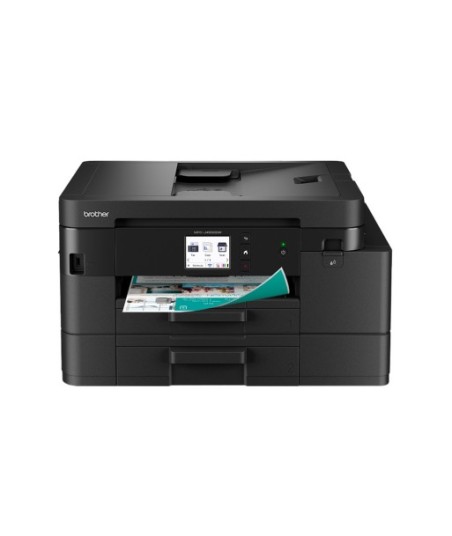 Cópia, Impressão, Digitalização, Fax¶¶Impressora de tinta 4 em 1 (impressora, copiadora, scanner e fax) com alto desempenho, conectividade WiFi, WiFi Direct e LAN, com impressão em frente e verso automático, conexão com dispositivos móveis e grande capacidade de papel.¶¶Tipo de impressora: Cores¶Função: Cópia, Impressão, Digitalização, Fax¶Tecnologia: Jato de tinta¶Tamanho máximo do papel: A4¶Conetividade: USB, Cablada, WiFi¶Memória: Interno (256 Mb)¶Painel de controlo: Visor tátil¶Visor: Sim (Visor tátil a cores de 6,8 cm)¶¶Velocidade de impressão 1 face A4 a preto: 20 (páginas por minuto)¶Velocidade de impressão 1 face A4 a cores: 19 (páginas por minuto)¶Velocidade de impressão em frente e verso A4 a preto: 11 (páginas por minuto)¶Velocidade de impressão em frente e verso A4 a cores: 10 (páginas por minuto)¶Tempo de impressão da primeira página: Preto e branco (5,8 segundos), Cores (5,9 segundos)¶Impressão móvel: Sim¶Impressão frente e verso automática: Sim¶Resolução: Até 1.200 x 4.800 ppp¶Modo Silêncio: Sim¶Ciclo de trabalho: Até 2.000 páginas¶¶Entrada de papel: Alimentador automático de documentos (20 folhas), Ranhura de alimentação manual (1 folha), Standard (Bandeja 1) (150 folhas), Bandejas inferiores (250 folhas)¶Saída de papel: A4 (100 folhas)¶¶A copiar¶Velocidade de cópia 1 face A4 a cores: 10.5 (imagens por minuto)¶Velocidade de cópia 1 face A4 a preto: 13 (imagens por minuto)¶Velocidade de cópia em frente e verso A4 a cores: 4.5 (imagens por minuto)¶Velocidade de cópia em frente e verso A4 a preto: 5 (imagens por minuto)¶Resolução da cópia: Até 1.200 x 2.400 ppp¶Tempo de primeira cópia (segundos): Cores (13,0 segundos), Mono (10,5 segundos)¶Funções de cópia: Cópias múltiplas/empilhamento/ordenação, Ampliação/redução, Cópia N em 1, Cópia 2 em 1 de documentos de identificação¶¶A digitalizar¶Tipo de scanner: CIS (sensor de imagem de contacto)¶Digitalização a preto e a cores: Sim¶Resolução: Interpolada (Até 19200 x 19200 ppp), Vidro do scanner (Cores), Cores (1.200 x 2.400 ppp, 1.200 x 600 ppp), ADF (Cores)¶Profundidade da cor: Entrada (Processamento da cor de 30 bits), Saída (Processamento da cor de 24 bits)¶Velocidade de digitalização 1 face A4 a cores: 7 (imagens por minuto)¶Velocidade de digitalização 1 face A4 a preto: 17 (imagens por minuto)¶¶Funções do scanner¶Funções standard: Digitalização a (USB, SFTP, FTP, Ficheiro, Imagem, Email, Rede)¶Formatos de ficheiros suportados: PDF, JPEG, TIFF¶Funcionalidades de digitalização: Alinhamento automático, PDF de múltiplas páginas, Eliminação da cor de fundo¶¶A enviar fax¶Fax: Envio e receção de PC-Fax, Receção sem papel, Multidifusão, Redução automática, Memória de transmissão, ID da estação, Escala de cinzentos, Modem fax¶¶Software fornecido¶Macintosh Software (Brother iPrint&Scan Desktop(17) ), Software de Windows (Brother iPrint&Scan(17) ), Easy Setup, Utilitários¶¶Cartuchos¶BK (LC527BK - 1300 pages, LC527XLBK - 3000 pages), C, M, Y (LC527CMY - 900 pages, LC527XLCMY - 2000 pages)¶¶Incluído na caixa¶Cabo de alimentação elétrica, Guia de instalação rápida, Garantia, Equipamento, Consumíveis¶¶Dimensões com caixa: 527mm (L) x 342mm (P) x 498mm (A)¶Peso com caixa: 13.2kg¶Dimensões sem caixa: 440mm (L) x 355mm (P) x 250mm (A)¶Peso sem caixa: 10.4kg¶¶Volume mensal recomendado: Até 2.000 páginas¶¶Interface local: Hi-Speed USB 2,0¶Interface de rede sem fios: 2,4 GHz: IEEE 802,11 b/g/n (modo infraestrutura), IEEE 802,11g/n (Wi-Fi Direct), 5GHz: IEEE 802,11a/n (Infrastructure Mode)¶Configuração WiFi suportada: Não¶WiFi Direct: Sim¶Interface de rede cablada: Fast Ethernet (10Base-T/100Base-TX)¶¶Conectividade móvel e web: Brother Mobile Connect (Android, iPad / iPhone), Apple AirPrint, Brother Print Service Plugin, Mopria®, Brother Apps, Web Connect¶