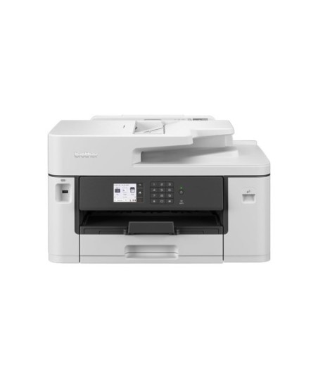 Impressora Multifunções de Tinta Profissional A4/A3, WiFi, Impressão até A3 e Impressão Automática em Frente e Verso até A4.¶Pensada para satisfazer as necessidades de pequenos escritórios ou grupos de trabalho de maior dimensão.¶¶Funções: Impressão, Cópia, Digitalização, Fax¶Tecnologia: Jato de Tinta¶¶Multifunções profissional A4 com impressão até A3, visor tátil a cores de 6,8cm e capacidade para 250 folhas de papel. ¶Frente e verso automático de impressão até A4.¶Com uma velocidade de impressão de 28ppm a preto e cores (ISO 24734), e um tempo de impressão da primeira página de apenas 5 segundos (ISO 17629), conseguirá documentos de grande qualidade e sem complicações.¶Conexão por Ethernet ou WiFi.¶Tinteiros incluídos de 350 páginas cada cor (CMYK).¶¶Tipo de impressora: Cores¶Função: Cópia, Fax, Impressão, Digitalização¶Tecnologia: Jato de tinta¶Tamanho máximo do papel: A3¶Conetividade: USB, Cablada, WiFi¶Memória: Interno (256 Mb)¶Painel de controlo: Visor tátil¶Visor: Sim¶¶Impressão (1)¶Velocidade de impressão 1 face A4 a preto: 28 (páginas por minuto)¶Velocidade de impressão 1 face A4 a cores: 28 (páginas por minuto)¶Velocidade de impressão em frente e verso A4 a preto: 21 (páginas por minuto)¶Velocidade de impressão em frente e verso A4 a cores: 21 (páginas por minuto)¶Tempo de impressão da primeira página (2): Preto e branco (4,4 segundos), Cores (4,6 segundos)¶Impressão móvel: Sim¶Impressão frente e verso automática: Sim¶Modo Silêncio: Sim¶Ciclo de trabalho: Até 2.500 páginas¶Funções da impressora: Impressão N em 1, Impressão de cartazes, Impressão ID, Impressão em folheto, Perfis de impressão, Impressão de marca de água¶¶Manuseamento de papel (11)¶Entrada de papel: Ranhura de alimentação manual (1 folha), Standard (Bandeja 1) (250 folhas), Alimentador automático de documentos (50 folhas)¶Saída de papel: A4 (100 sheets), A3 (50 folhas)¶Impressão de envelopes: Sim¶¶A copiar¶Velocidade de cópia 1 face A4 a cores: 16 (imagens por minuto)¶Velocidade de cópia 1 face A4 a preto: 25 (imagens por minuto)¶Resolução da cópia: Até 600 x 600 ppp¶FCOT desde modo listo (segundos): Cores (6,0 segundos), Mono (5,0 segundos)¶Escala de cinzentos: 256 tons de cinzento (8 bits)¶Funções de cópia: Cópias múltiplas/empilhamento/ordenação, Ampliação/redução, Cópia N em 1, Cópia 2 em 1 de documentos de identificação, Ampliar cópia de texto¶¶A digitalizar¶Tipo de scanner: CIS (sensor de imagem de contacto)¶Digitalização a preto e a cores: Sim¶Resolução: Mono (600 x 600 ppp), Vidro do scanner (Mono, Cores), ADF (Mono, Cores), Cores (600 x 600 ppp)¶Profundidade da cor: Saída (Processamento da cor de 24 bits), Entrada, Processamento da cor de 48 bits¶Velocidade de digitalização 1 face A4 a cores (3): 25 (imagens por minuto)¶Velocidade de digitalização 1 face A4 a preto (3): 25 (imagens por minuto)¶¶WiFiDirect: Sim¶¶Funções do scanner¶Funções standard: Digitalização a (Rede, PDF com capacidade de pesquisa, SharePoint (On Premise), SharePoint, FTP, Ficheiro, Imagem, OCR, Email)¶Perfis de digitalização: 5 redes pré-estabelecidas¶Funcionalidades de digitalização: Alinhamento automático, Eliminação da cor de fundo¶¶Fax: Envio e receção de PC-Fax, Receção sem papel, Modo correção de erros (ECM), Deteção de toque diferente (apenas Reino Unido e Dinamarca), Multidifusão, Redução automática, Escala de cinzentos, Memória de transmissão¶¶Software fornecido: Software de Windows (Brother iPrint&Scan), Macintosh Software (Brother iPrint&Scan Desktop)¶¶Consumíveis e acessórios (9)¶Cartuchos: BK (LC422BK - 550 páginas, LC422XLBK - 3000 páginas), C, M, Y (LC422CMY - 550 páginas, LC422XLCMY - 1500 páginas), C, M, Y, K (LC422VAL- 4 x 550 páginas, LC422CXLVAL - 3000 páginas BK, 1500 páginas CMY)¶¶Incluído na caixa: Cabo de alimentação elétrica, Guia de instalação rápida, Guia de Segurança do Produto, Garantia, Equipamento, Consumíveis, Manual do Utilizador¶¶Dimensões com caixa: 636mm (L) x 468mm (P) x 419mm (A)¶Peso com caixa: 19kg¶Dimensões sem caixa: 530mm (L) x 398mm (P) x 305mm (A)¶Peso sem caixa: 17kg¶¶Volume mensal recomendado: Até 2.500 páginas¶¶Certificação: Blue Angel, Nordic Swan, GS Mark¶¶Interface local: USB 2,0 Host (Frontal), Hi-Speed USB 2,0¶Interface de rede sem fios: 2,4GHz: IEEE 802,11b/g/n, 5GHz: IEEE 802,11a/n (Infrastructure Mode)¶Configuração WiFi suportada: Sim¶Aplicações sem fios: Sim¶WiFi Direct: Sim¶Interface de rede cablada: Ethernet 10/100BASE-TX Auto Negotiation¶Rede WiFi: 2,4 GHz: IEEE 802,11 b/g/n (modo infraestrutura), IEEE 802,11 g/n (Wi-Fi Direct), 5GHz: IEEE 802,11 a/n (modo infraestrutura)¶¶Conectividade móvel e web: Brother Mobile Connect (Android, iPad / iPhone), Apple AirPrint, Brother Print Service Plugin, Mopria®, Brother Apps, Web Connect¶¶Advertências¶[1] Velocidade de impressão segundo ISO/IEC 24734¶[2] Velocidade de impressão da primeira página (FPOT) baseada em ISO/IEC 17629¶[3] Velocidade de digitalização baseada em ISO/IEC 17991¶[9] Capacidade do cartucho baseada em ISO/IEC 24711¶[11] Capacidade calculada com papel de 80g/m2¶