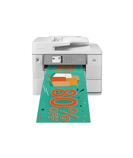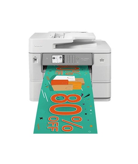 Impressora multifunções profissional de tinta A3, com capacidade de impressão em grande formato, WiFi, frente e verso até A3 em todas as funções e tinteiros XL muito económicos.¶Impressão em rolo para imprimir facilmente banners, faixas, pósteres, fotos panorâmicas e cartazes promocionais com o comprimento desejado graças ao cortador automático.¶¶Tipo de impressora: A cores¶Funções: Impressão, Cópia, Cortar, Digitalização, Fax¶Visor: Visor tátil a cores¶Tamanho do visor: 8.8cm¶Tamanho máximo de papel: A3¶Memória: 512MB¶Tecnologia: Jato de tinta¶¶CÓPIA¶Cópia frente e verso: Sim¶Resolução: Vidro: até 600x600ppp (preto/cores) / ADF: até 600x600ppp (preto), Até 300x600ppp (cores)¶Ampliação/redução¶Reduz ou amplia o tamanho do documento, de 25% a 400%, em incrementos de 1%¶¶FAX ¶Envio de faxes frente e verso automático¶Fax modem: 33.6 kbps¶Fax pela Internet¶PC Fax¶¶IMPRESSÃO¶Velocidade de impressão nos 2 lados, formato A4: Até 21 páginas por minuto¶Velocidade de impressão normal, formato A4: Até 30 páginas por minuto¶Resolução: Até 1200 x 4800 dpi (Horizontal x Vertical)¶Impressão nos 2 lados automática: Sim¶Emulações: PCL6, BR-Script3, PDF Version 1.7, XPS Version 1.0¶Tempo de impressão da primeira página: Menos de 4.6 segundos¶Volume mensal recomendado: 3500 páginas¶¶DIGITALIZAÇÃO¶Digitalização frente e verso: Sim¶Resolução: Vidro: 1200 x 2400ppp (preto) 1200 x 1200ppp (cores). ADF: 600 x 600ppp (preto) 300 x 600ppp (cores)¶Velocidade: A4 - 1 face: 25ppm (preto e cores), 2 faces: 36ppm (preto e cores). A3 - 1 face: 13ppm (preto e cores), 2 faces: 17ppm (preto e cores)¶Tipo de digitalizador: CIS¶¶PAPEL¶Alimentação de papel: Bandeja standard: 250 folhas, Bandeja inferior: 500 folhas ou rolo de papel (1 rolo), Bandeja multipropósito: 100 folhas, Alimentador automático de documentos (ADF): 50 folhas¶Saída de papel: 100 folhas A4, 50 folhas A3/ Comprimento rolo papel 210mm-2700mm, calculado com papel de 80g/m²¶¶SISTEMAS OPERATIVOS E SOFTWARE¶ChromeOS¶Linux: CUPS e LPD/LPR (x86, x64)¶Macintosh: Mac OS X 10.15.x ou superior¶Windows: Server 2008, Server 2008R2, Server 2012, Sever 2012R2, Server 2016, Server 2019, Windows 7, Windows 8, Windows 10, Windows 11¶Software incluído Mac: Brother iPrint&Scan¶Software incluído Windows: Brother iPrint&Scan, BRAdmin Professional, Mass Deployment Tool, Status Monitor¶¶INCLUÍDO NA EMBALAGEM¶4 tinteiros (3.000 págs/preto e 1.500 págs/ciano, magenta e amarelo segundo ISO/IEC 24711)¶Cabo de alimentação elétrica¶Guia de segurança¶Guia de utilizador¶Guia rápido de configuração¶¶DIMENSÕES E PESOS¶Com caixa de embalagem: 681(L) x 561(P) x 563(A) mm¶Com caixa de embalagem: 34.8 kg¶Sem caixa de embalagem: 576(L) x 477(P) x 445(A) mm¶Peso: 28.6 kg¶¶GARANTIA¶Quando adquirir um equipamento de impressão ou digitalização Brother, está a adquirir também um equipamento com 3 anos de garantia. Se for uma empresa ou um profissional, para aceder a este terceiro ano de garantia comercial é necessário que registe o seu equipamento na página web Brother, no prazo máximo de 45 dias a partir da data da fatura de compra.¶