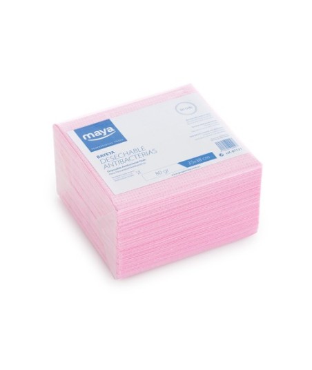 Cor Rosa¶Dimensões 35 x 38 cm¶Gramagem 80 g/m2¶¶Composição:¶70% Viscose¶30% Poliéster¶¶As fibras destes panos foram tratadas com o biocida antibacteriano VANTOCIL IB, de largo espetro e de ação rápida.¶¶Uso recomendado:¶Pode ser lavado até 10 vezes na máquina de lavar roupa, é antibacteriano e adequado para contacto com alimentos.¶