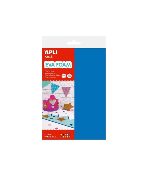 A goma EVA é um material ideal para artesanato tanto para uso doméstico quanto para uso escolar.¶É macio, flexível, fácil de cortar, colar e pintar.¶Também é à prova d'água e moldável por calor.¶Material básico para fazer fofuchas, máscaras, coroas, fantasias e todo tipo de artesanato.¶¶Tamanho A4 210 x 297 mm¶Espessura: 2mm¶Pacote contém 10 folhas (1 por cor)¶Sortido: Amarelo, Azul, Branco, Cinza, Lilás, Laranja, Preto, Vermelho, Rosa, Verde¶¶