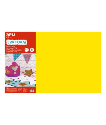 A goma EVA é um material ideal para artesanato tanto para uso doméstico quanto para uso escolar.¶É macio, flexível, fácil de cortar, colar e pintar.¶Também é à prova d'água e moldável por calor.¶Material básico para fazer fofuchas, máscaras, coroas, fantasias e todo tipo de artesanato.¶¶Goma EVA amarela¶Tamanho 600 x 400 mm¶Espessura: 2mm¶Pacote contém 5 folhas da mesma cor¶